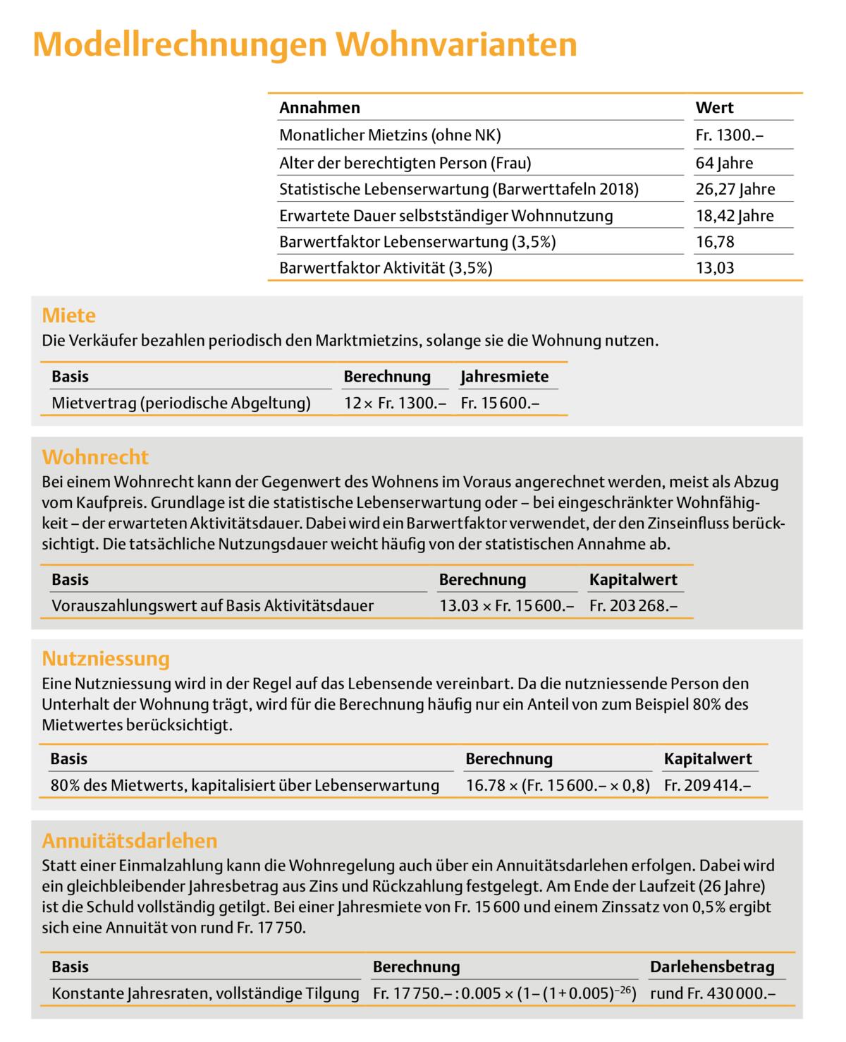 Ist das Wohnrecht oder die Nutzniessung im Voraus abgegolten worden, entstehen grundsätzlich keine weiteren Ansprüche. Bei der einmaligen Abgeltung ist der Betrag bereits bei der Übergabe berücksichtigt. Beim Annuitätsdarlehen ergibt sich der noch geschuldete Betrag aus der Amortisationstabelle.