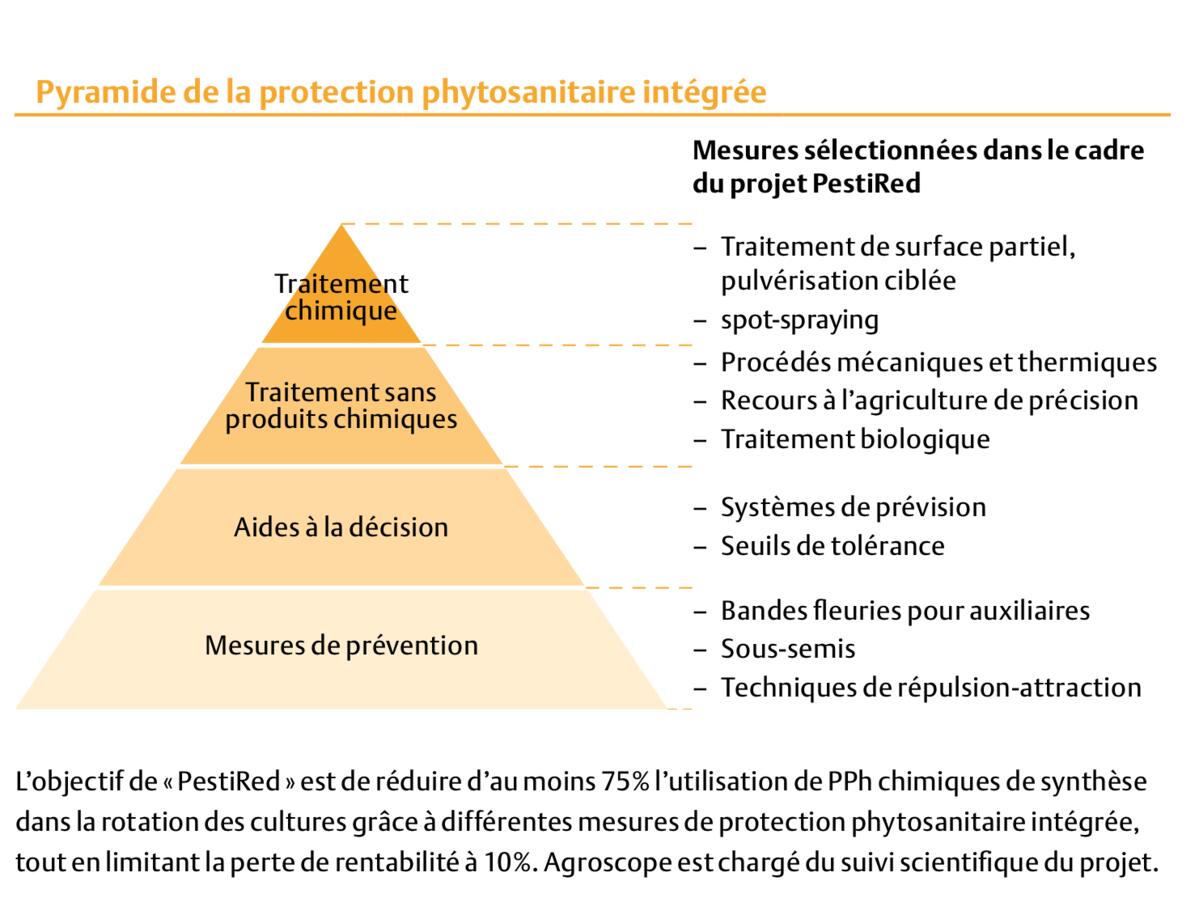 Sises dans les cantons de Genève, Vaud et Soleure, les 65 exploitations participantes disposent chacune d’une parcelle de contrôle et d’une parcelle d’innovation. Sur cette dernière, différentes mesures sont appliquées pour réduire l’utilisation des PPh, alors que sur la parcelle de contrôle, la même culture est exploitée selon les pratiques habituelles, qui peuvent englober aussi bien les méthodes conventionnelles qu’une utilisation déjà réduite de produits phytosanitaires (culture extenso).