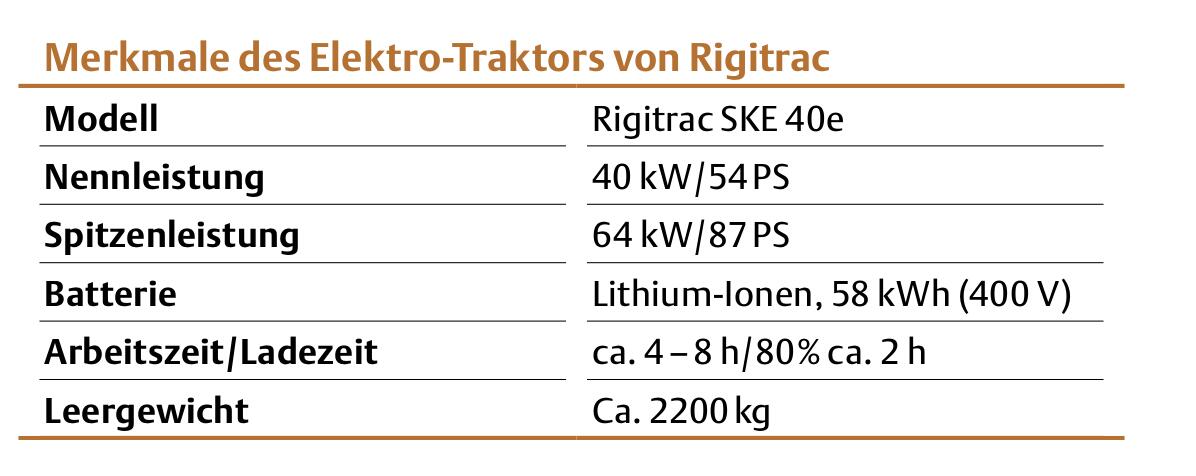 Das maximale Drehmoment steht bereits ab dem Anfahren zur Verfügung und sorgt auch unter Last für eine kraftvolle Beschleunigung. Der Elektromotor ermöglicht Fahrgeschwindigkeiten ohne Gangwechsel, je nach Ausführung bis 30 oder 40 km / h. Die ROPS- und FOPS-zertifizierte Kabine bietet einen mit konventionellen Traktoren vergleichbaren Komfort. Neben der guten Rundumsicht überzeugt die ergonomische Gestaltung mit einer Multifunktionsarmlehne, einem programmierbaren Joystick sowie einem farbigen Touchscreen für intuitive Bedienung. Mit dem Rigitrac SKE40e wird der Elektro-Traktor zu einer praxisreifen Realität. Er stellt eine Alternative zu konventionellen Traktoren dar und bietet eine Lösung für kommunal- und landwirtschaftliche Betriebe – ohne Kompromisse bei Leistung und Funktionalität.