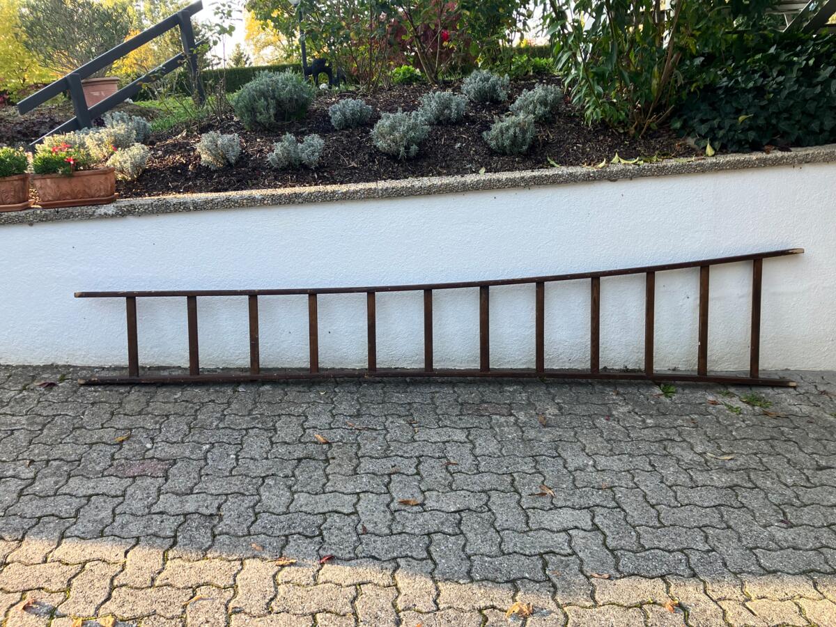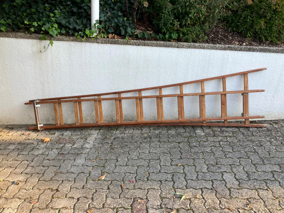 2 échelles en bois d’occasion: 340 cm, 12 échelons, 70 cm à la base, 40 cm au sommet, 20 fr.; double, 2 × 310 cm, 2 × 11 échelons, 75 cm à la base, 40 cm au sommet, 30 fr.