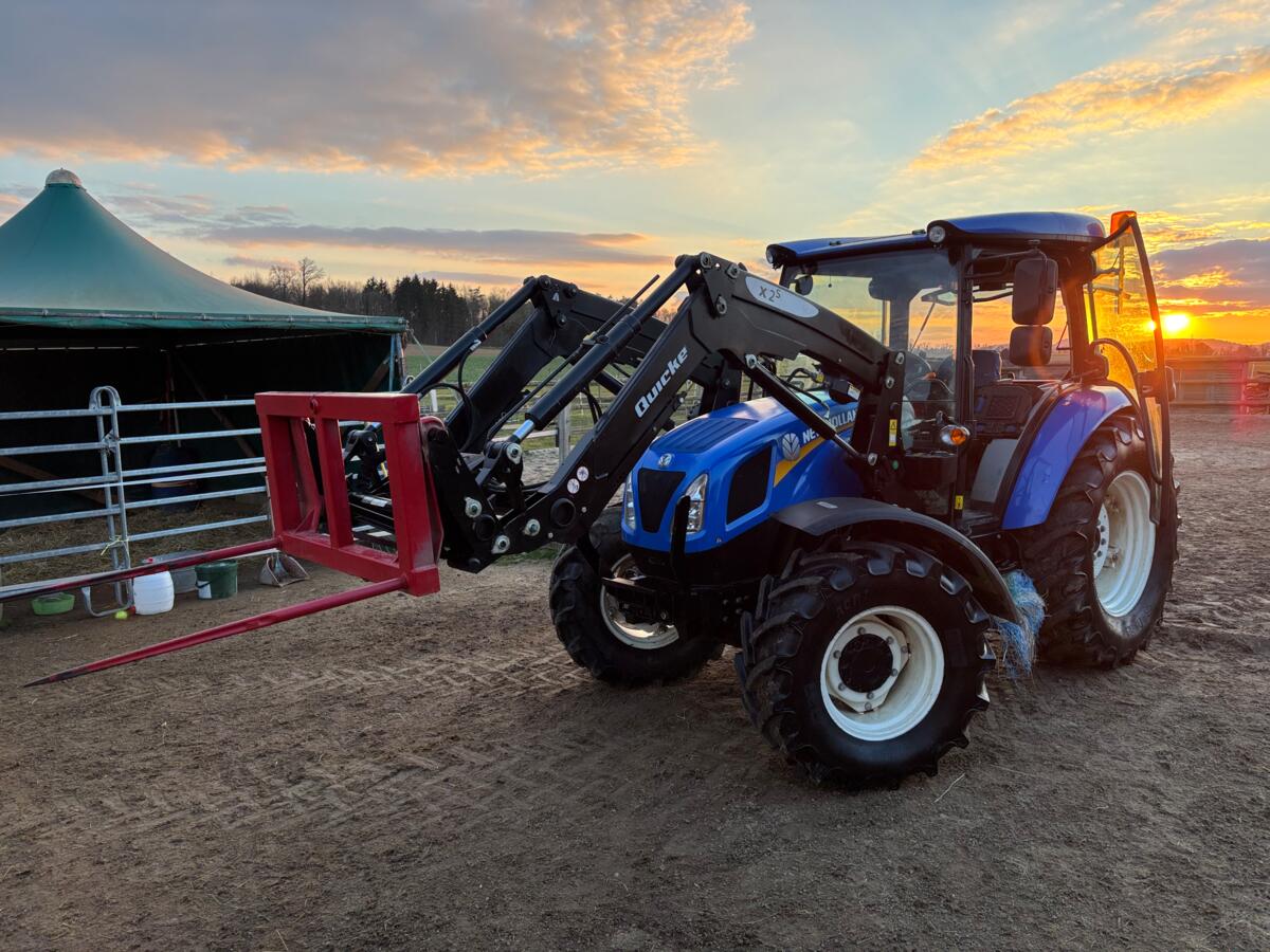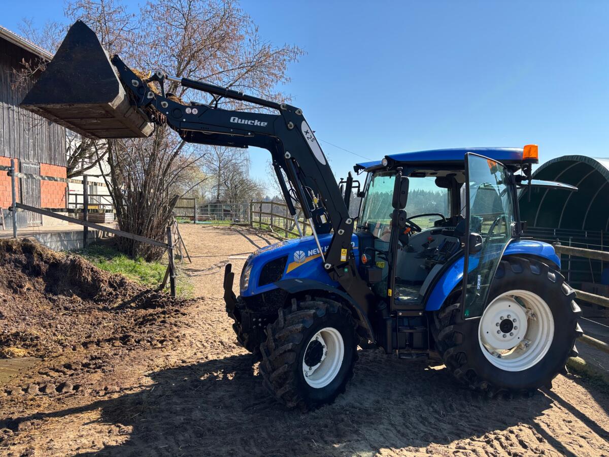 Traktor New Holland T4.75S, Baujahr 2019, ca. 1050 h, 75 PS, Frontlader Quicke 2XS mit 3. Funktion, Getriebe 12x12 Powershuttle, Hecksteuerventile 3x DW, Zwischenachssteuerventile 2x, hydraulische Anhängerbremse (2-Leiter), Klima, Bereifung 480/70 R30 – 380/70 R20, Fr. 48'000