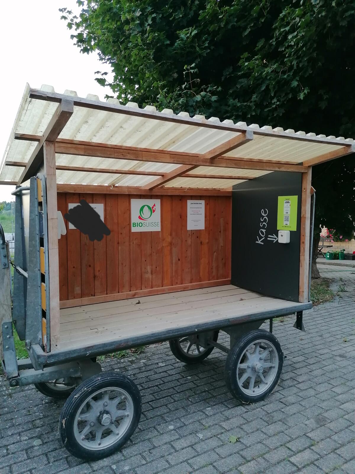 Verkaufswagen/Verkaufsstand zu verkaufen, funktionstüchtige Bremsen, transportfähig, inkl. neuer Sichtplatten für das Ersatzdach, Preis auf Anfrage, nur per Telefon