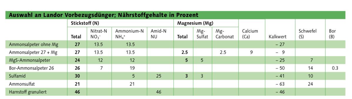 Nitrat wird im Bodenwasser gelöst. Es gelangt mit dem Wasser in die Pflanze und ist dadurch – auch bei tiefen Temperaturen – besonders schnell wirksam. Allerdings ist bei Nitrat auch die Auswaschungsgefahr am höchsten. Beim Andüngen im Frühling und zur genauen Bestandesführung sollten deshalb Dünger mit Stickstoff in Nitratform verwendet werden.